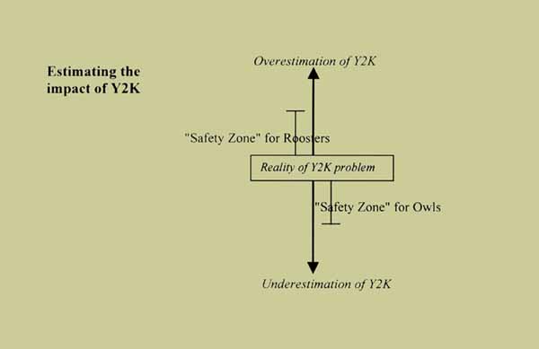 Working from the idea that there are the discussed 2 problems under the 1 Y2K umbrella, roosters and owls may be classified in the following way: